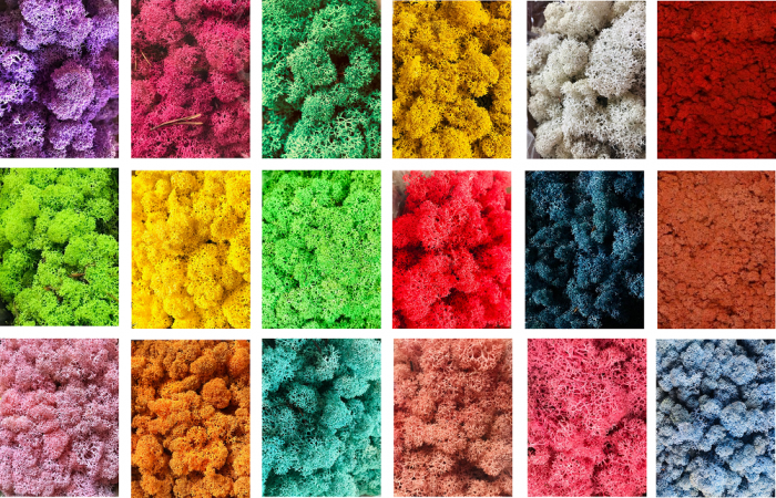 Mix-ul de Lichenii naturali stabilizati, cu radacina, este ambalat in cutii de 500 gr. Se pot alege intre 2-4 culori dintre: